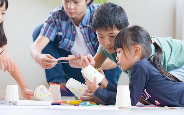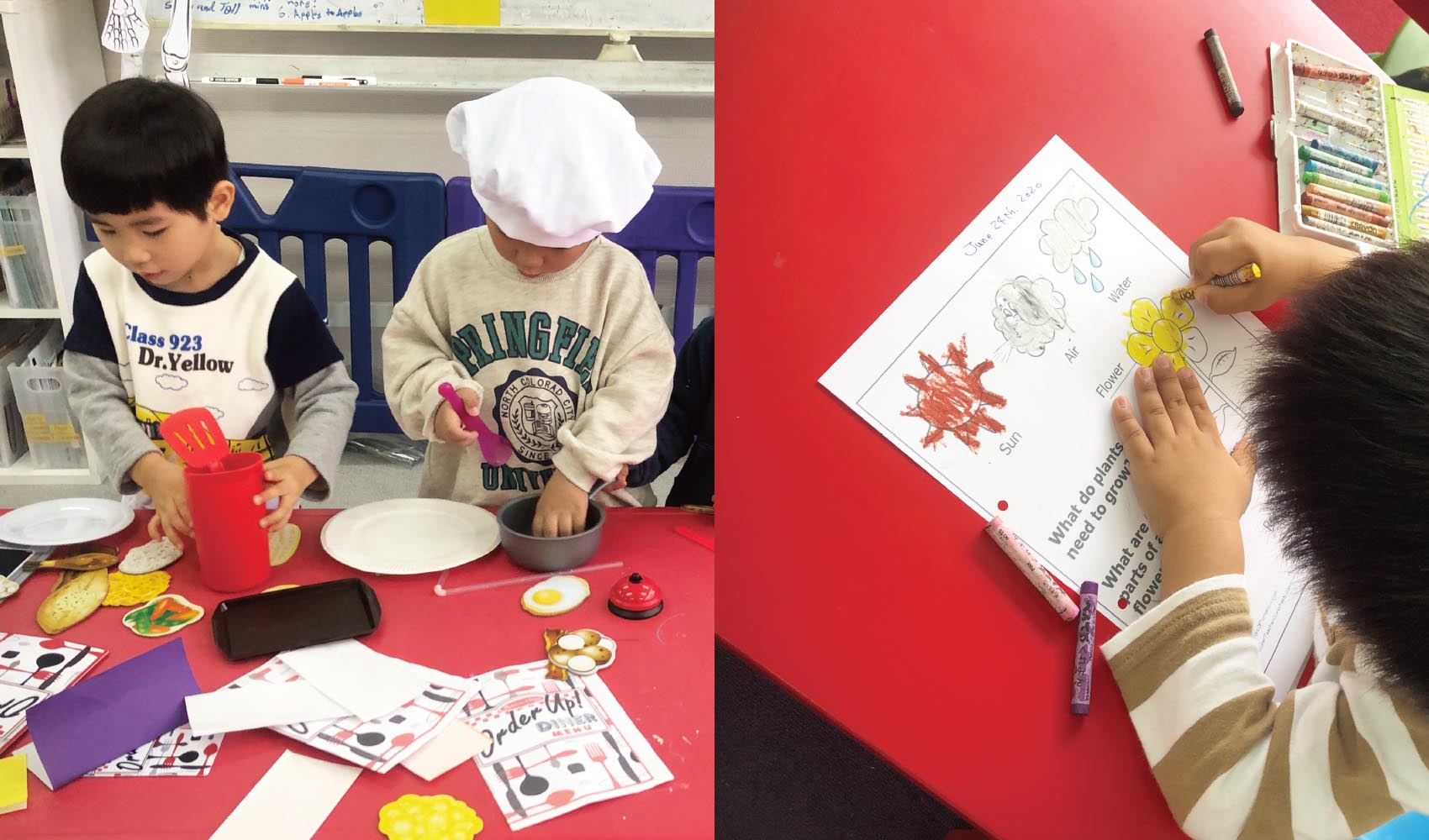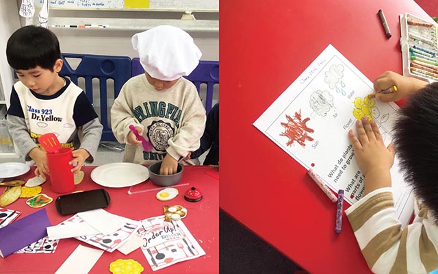 毎日の活動はミュージック&ムーブメント、アート、クラフト、サークルタイム、アクティビティ、ストーリー(読みきかせ)、サイエンス、マス(算数)、リタラシイ(読み書き)など様々なカリキュラムを全て英語で行っていきます。プリスクールでは1日4時間、アフタースクールでは1日2時間以上、ネイティブ講師と一緒にたっぷりと英語環境で過ごし、遊びや活動を通してより自然な形で英語に接し、楽しみながら英語習得を目指します。