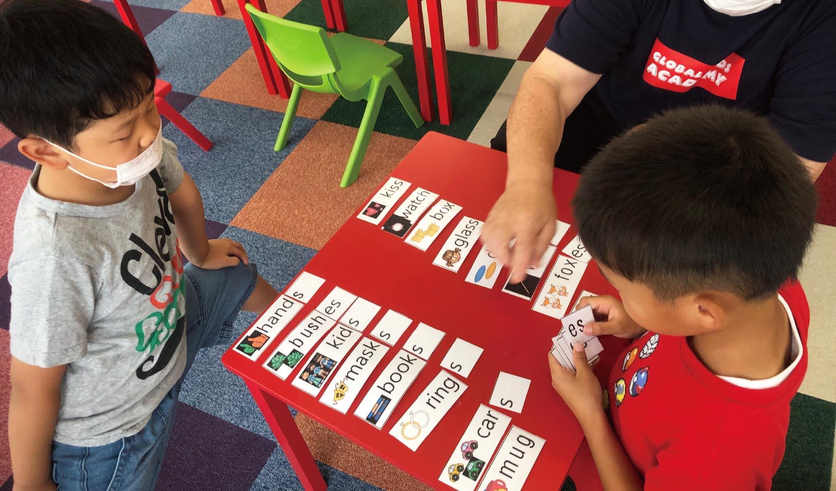 生活密着型・体験型のプログラムで経験を通してより自然に確かな英語力を身につけます。教室の雰囲気はまるでアメリカの学校!!こどもたちのワクワク、楽しい、もっと遊びたいがいっぱいの教室です。グローバルキッズインターナショナルスクール(GIS)では、アメリカのプリスクール、キンダーガーテン、エレメンタリーカリキュラムに基づいたレッスンを行っています。